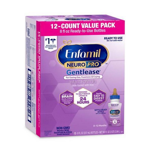 Enfamil gentlease is a 20 cal fl oz milk based infant formula designed to reduce fussiness gas and crying.